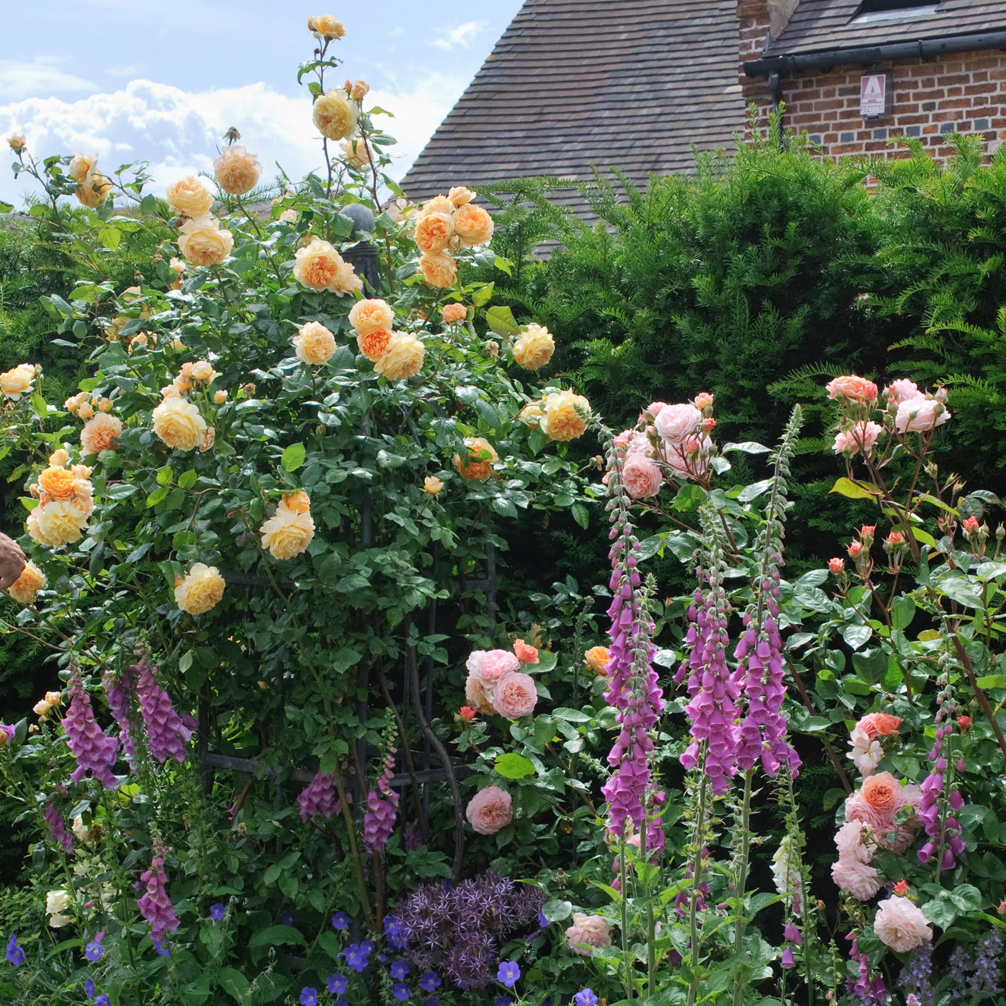 A vigorous climber, bearing quite large, many petalled, neat rosette flowers in a lovely shade of apricot-orange. They have a medium-strong Tea fragrance and are produced with exceptional freedom and regularity. There is plentiful, glossy foliage.